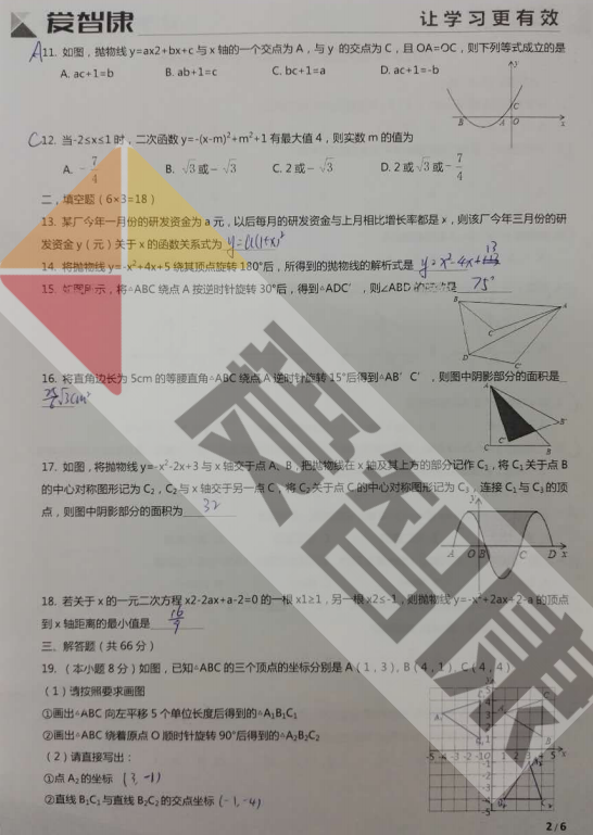 天津南开翔宇中学2016-2017学年初三第一次月考数学试题(2)