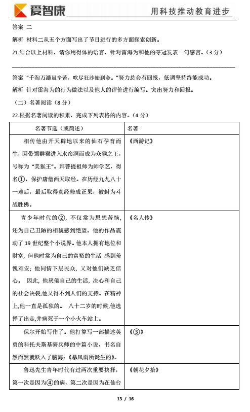 天津河北区2017-2018学年九年级一模语文试题答案(已公布)(13)